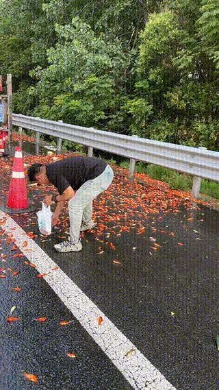 貨車高速公路上翻車,車廂內貨物「灑落行車道」,路人細看後驚恐:竟都是活物!