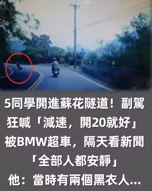 5同學開進蘇花隧道!副駕狂喊「減速,開20就好」被BMW超車,隔天看新聞「全部人都安靜~」他:當時有兩個黑衣人...