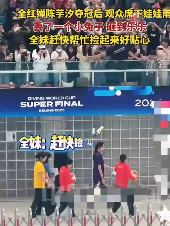 陳芋汐奪冠後被觀眾扔玩偶砸中頭全紅嬋一個舉動暴露倆人真實關係