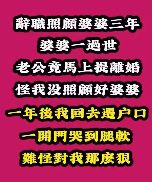 辛辛苦苦照顧婆婆三年,沒想到婆婆去世後,老公突然提出離婚!
