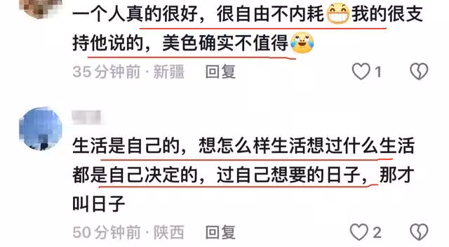 此事也引發了網友的熱議:「這男的真是人間清醒,一個人自由又不內耗,但是孤獨也是真的孤獨。」、「生活是自己的,想過什麼日子,都是自己決定的。」、「沒有焦慮、沒有壓力,一輩子開心最重要!」、「高境界的人,活得真通透。」