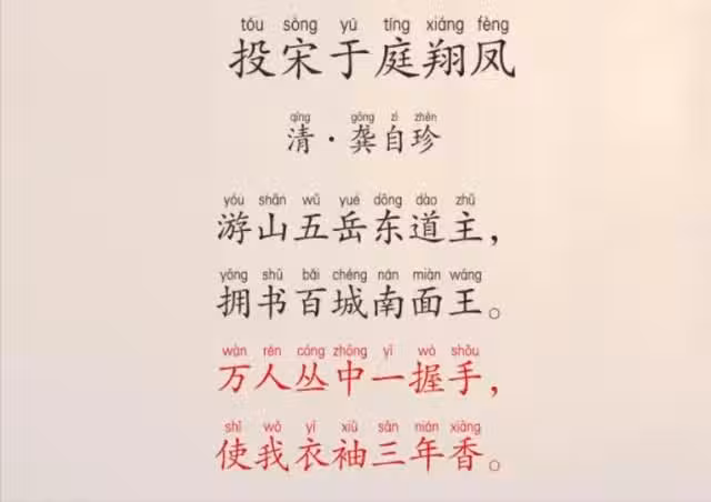 第三、四句中的「萬人一握手」和「衣袖三年香」,直接將這首詩抬到了它不該有的高度。