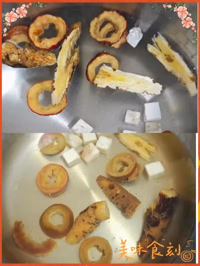 1. 把黃芪、茯苓、山楂乾和陳皮都沖一下,弄乾凈。