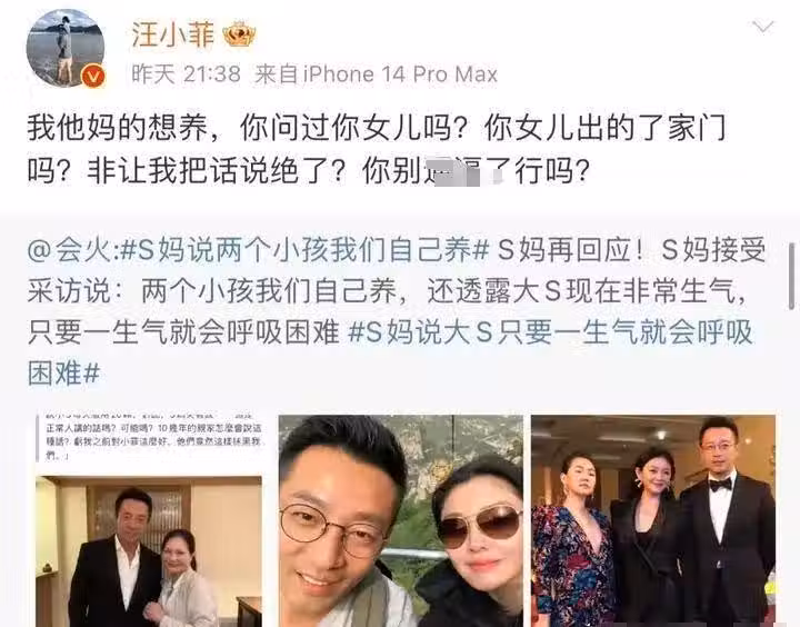 而對於曾經的丈母娘S媽,汪小菲也更是沒有口下留情。