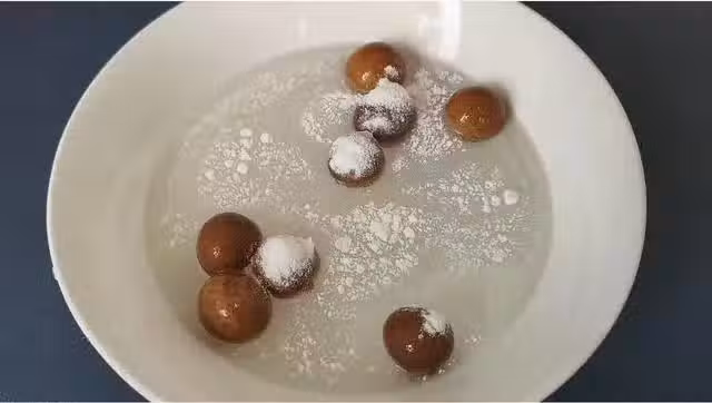 然後再準備一包食用小蘇打,撒上一點食用小蘇打,這樣清洗的更加乾淨,最後用你發財的手開始清洗桂圓。