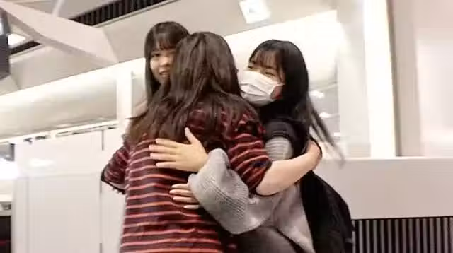 機場告別時,一家人雖然都很傷感難過,但還卻儘量表現得輕鬆,兩姐妹也強忍不在媽媽面前落淚。