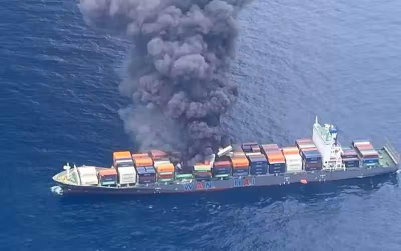 根據印度媒體報導,萬海旗下WAN HAI 503旺春輪於台北時間2025年6月9日在印度西岸航行時,突然發生巨大爆炸。
