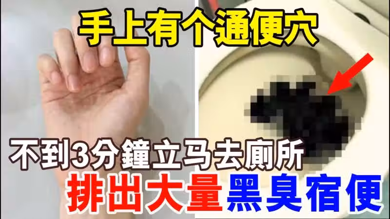 便秘10天拉不出,手上有個通便穴,不到3分鐘立馬去廁所,排出大量黑臭宿便
