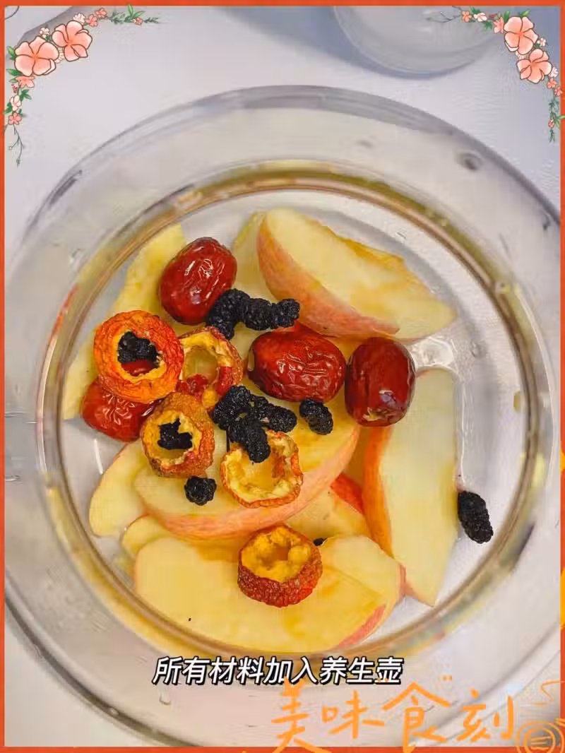 蘋果1個(切小塊),山楂干10克,桑葚干10克