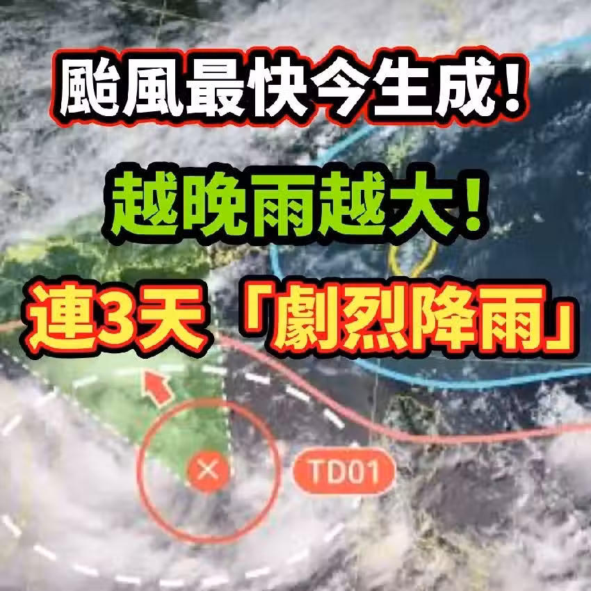 快訊 / 颱風最快今生成!越晚雨越大,連3天「劇烈降雨」