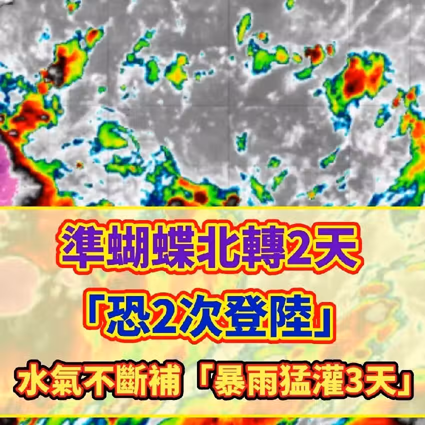 准蝴蝶北轉2天「恐2次登陸」!水汽不斷補「暴雨猛灌3天」