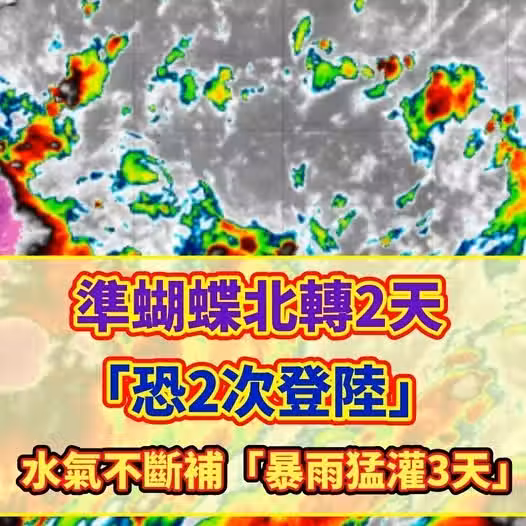 准蝴蝶北轉2天「恐2次登陸」!水汽不斷補「暴雨猛灌3天」!