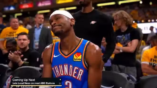 而且此時可以看到杰倫威廉士造犯規,結果還是2罰1中,那這確實就沒戲了,後續的比賽基本就是垃圾時間。那問題此時就出來了,最後一個球,雷霆的關鍵球還是切特投的三分,刷屏的就是杰倫威和切特,老二老三在爆發,那請問老大去哪兒了?回顧最後這一陣子的比賽,首先雷霆隊的老大呢?