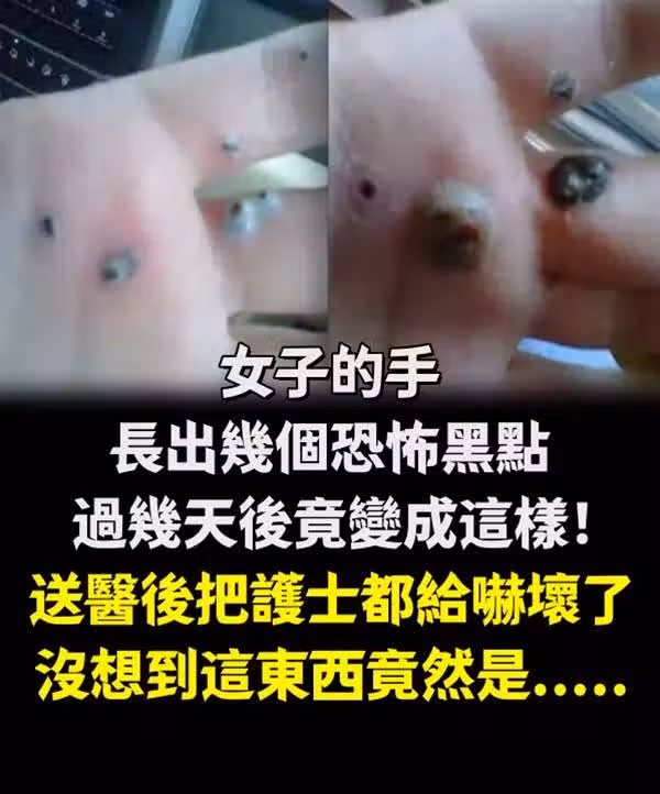 女子的手長出幾個恐怖黑點,過幾天後竟變成這樣!送醫後把護士都給嚇壞了,沒想到這東西竟然是