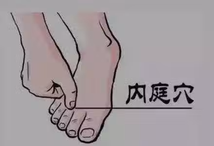 凡是胃火引起的牙痛、咽喉痛、鼻出血、口臭、胃酸、便秘都可以按摩內庭穴。按摩內庭穴祛熱、祛胃火效果非常好。
