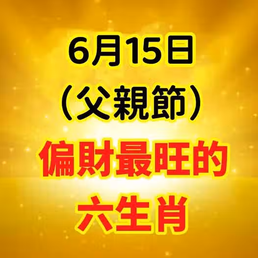 今天15號(父親節)偏財最旺的六生肖