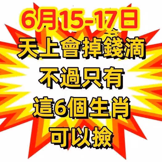 6月15 到 17日天上會掉錢滴,不過只有這6個生肖可以撿