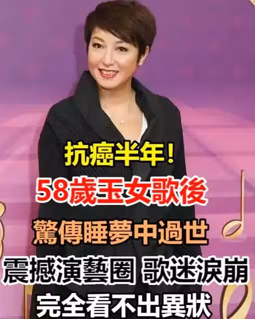 抗癌半年!58歲玉女歌后「驚傳睡夢中過世」震撼演藝圈,歌迷淚崩:完全看不出異狀...