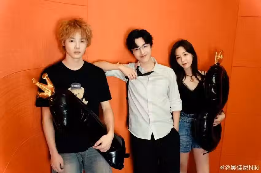 而42歲的吳佳尼身穿黑衣短褲入鏡,保養得宜的她看起來相當年輕,與兩個兒子同框、宛如姐弟般和諧。16歲的小兒子馬世心、則選擇染了一頭金髮,展現前衛風格,與哥哥斯文的形象,形成鮮明對比。