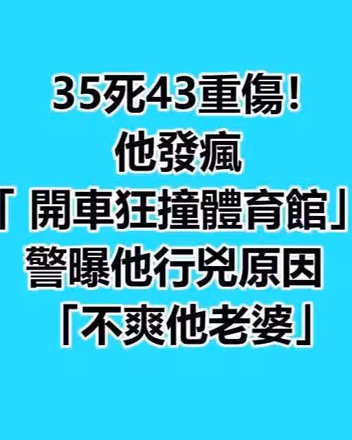 35死43重傷!他發瘋「開車狂撞體育館」 警曝他行兇原因:「不爽他老婆....」