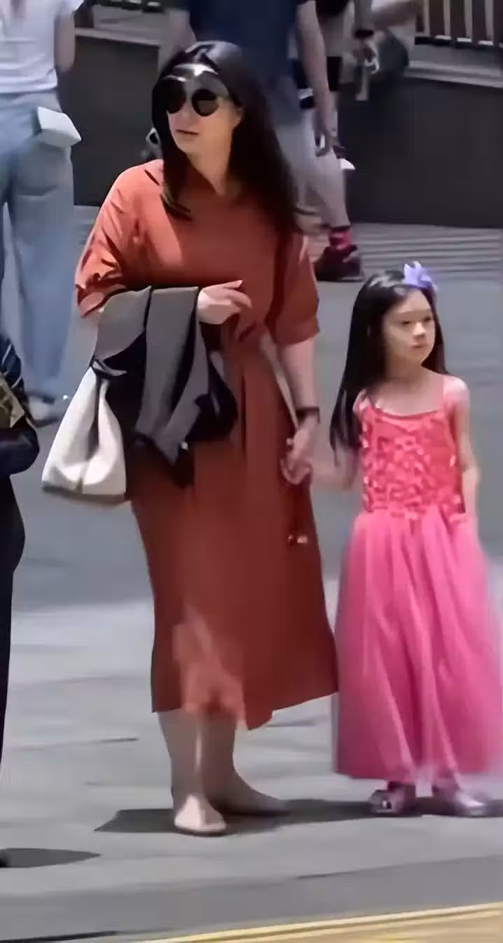 郭晶晶一家五口步行逛街,小女兒穿著鮮艷長發如瀑,顏值超越媽媽