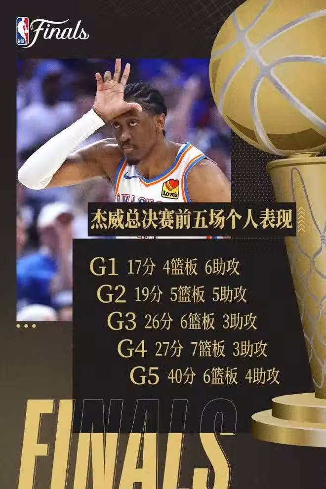 第1場杰倫威17分的時候,亞歷山大38分,第2場杰倫威19分,他34分,第3場杰倫威26分,他24分,第4場杰倫威27分,他35分。結果現在第5場杰倫威40分了,他卻只有31分,這傑威的得分越來越高,亞歷山大的得分反而越來越低了,說明大獎真的是距離他越來越遠了。