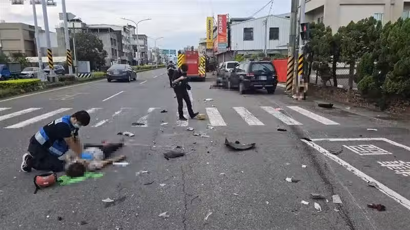 台南市麻豆區新生北路一處巷弄今天(18日)清晨,發生嚴重車禍,一輛汽車與雙載的女騎士發生碰撞,導致騎士、后座乘客都倒地,當場沒呼吸心跳,送醫搶救中,肇事駕駛則未受傷,詳細事故原因,仍待釐清。