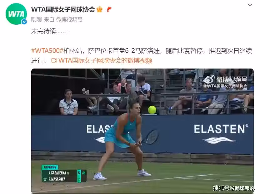 結果比賽出現了意外,主辦方要求暫停進行,隨後宣布第二盤的比賽推遲到次日進行,意味著薩巴倫卡跟馬薩洛娃又要繼續準備比賽,獲得了休息時間也會被縮減。