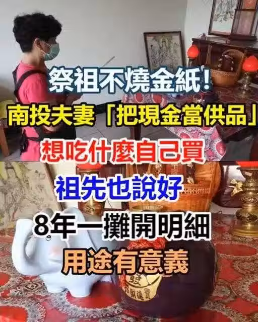 但是,在南投縣卻有一對夫妻不走尋常路,他們會將祭品、金紙換算成現金後,直接擺上貢品桌,反而能夠為家裡人帶來更多好運。