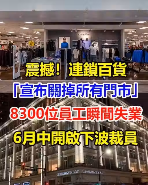 震撼!連鎖百貨「宣布關掉所有門市...」8300位員工瞬間失業「6月中開啟下波裁員」