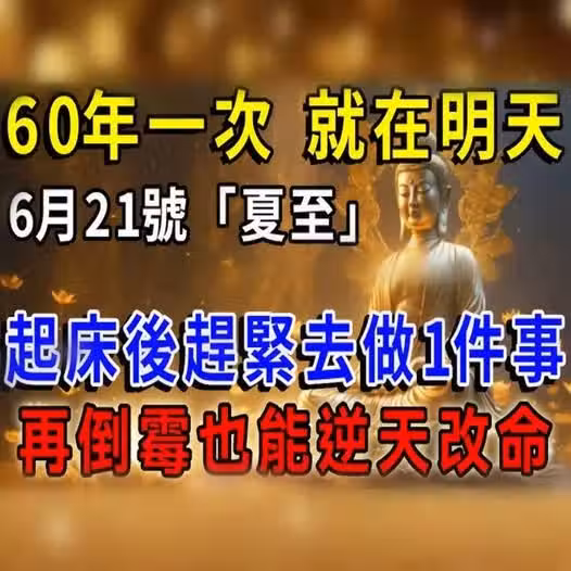 這可是60年才出現一次的「黃道吉日」,千萬不能錯過!尤其在夏至這天,陰陽轉換、天地交匯,是一年當中陽氣最盛的時刻,如果你想轉運、想擺脫厄運、想讓財運、桃花、人緣通通旺起來,一定要「起床後立刻去做這件事」!