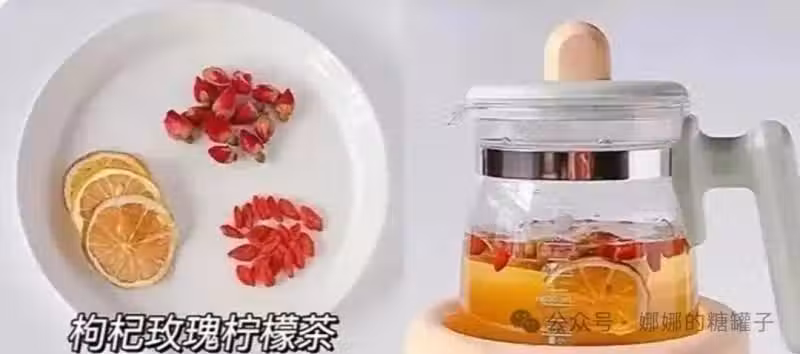 枸杞養肝,玫瑰疏肝解郁、養顏,檸檬美白嫩膚。經常飲用,能讓你的肝臟更健康,肌膚更加白皙嫩滑,同時還能緩解工作帶來的壓力和不良情緒。