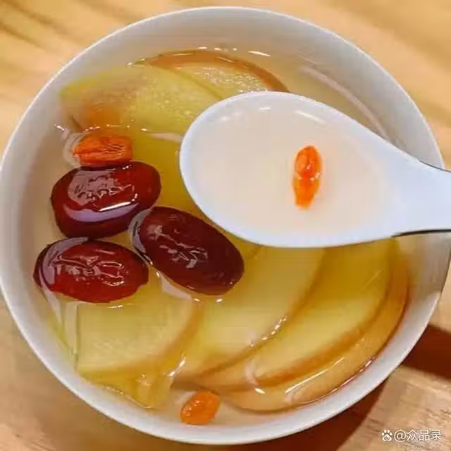 食材:紅蘋果1個(帶皮)、紅棗6顆、枸杞10克、老薑3片。