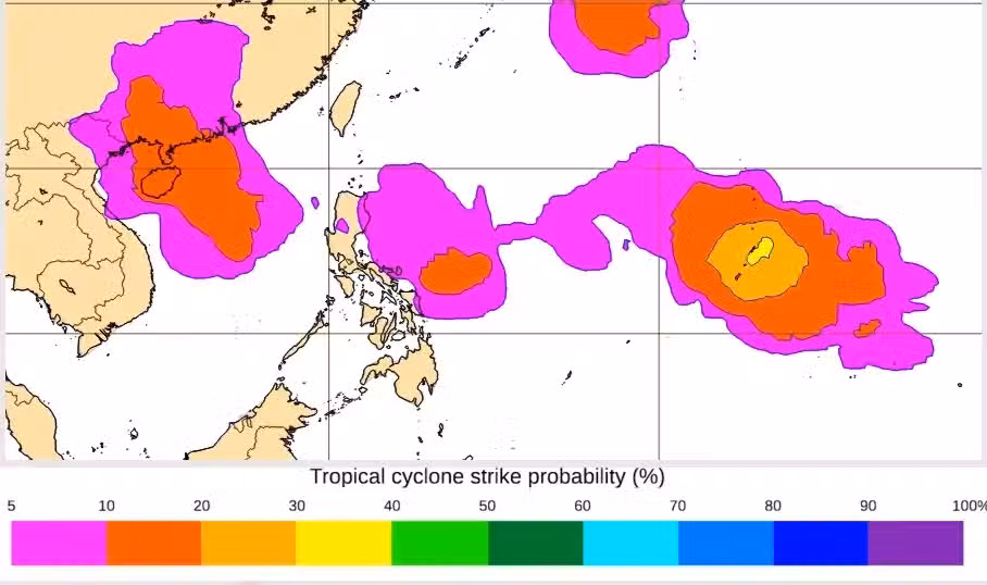 氣象專家賈新興表示,根據歐洲模式預測,觀察6/29至7/4發現,太平洋高壓逐漸往東北方向走,就是在台灣的東南方、菲律賓的東邊;不過,從AI模式預測發現,季風槽非常明顯,則是在南海到菲律賓呂宋島附近。