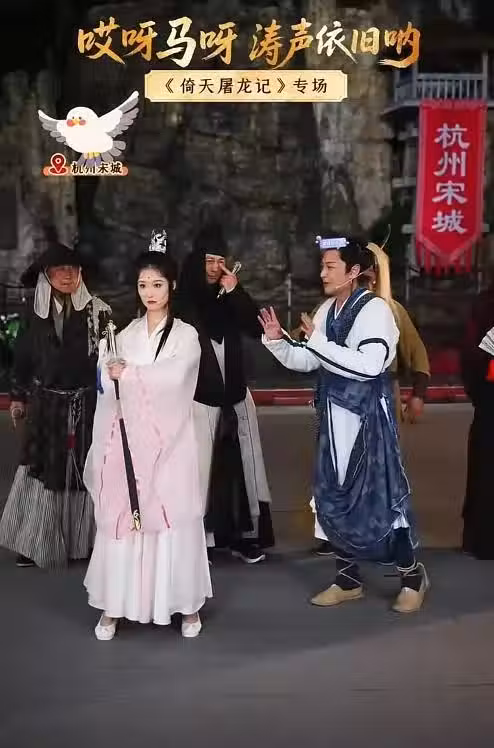 開場舞蹈表演完畢後,馬景濤緊接著就進行了簡短髮言,隨後又和工作人員一起重現《倚天屠龍記》中的經典橋段。