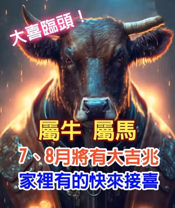 大喜臨頭!屬牛 屬馬人:「7、8月將有大吉兆」家裡有的快來「接喜」全家都走好運