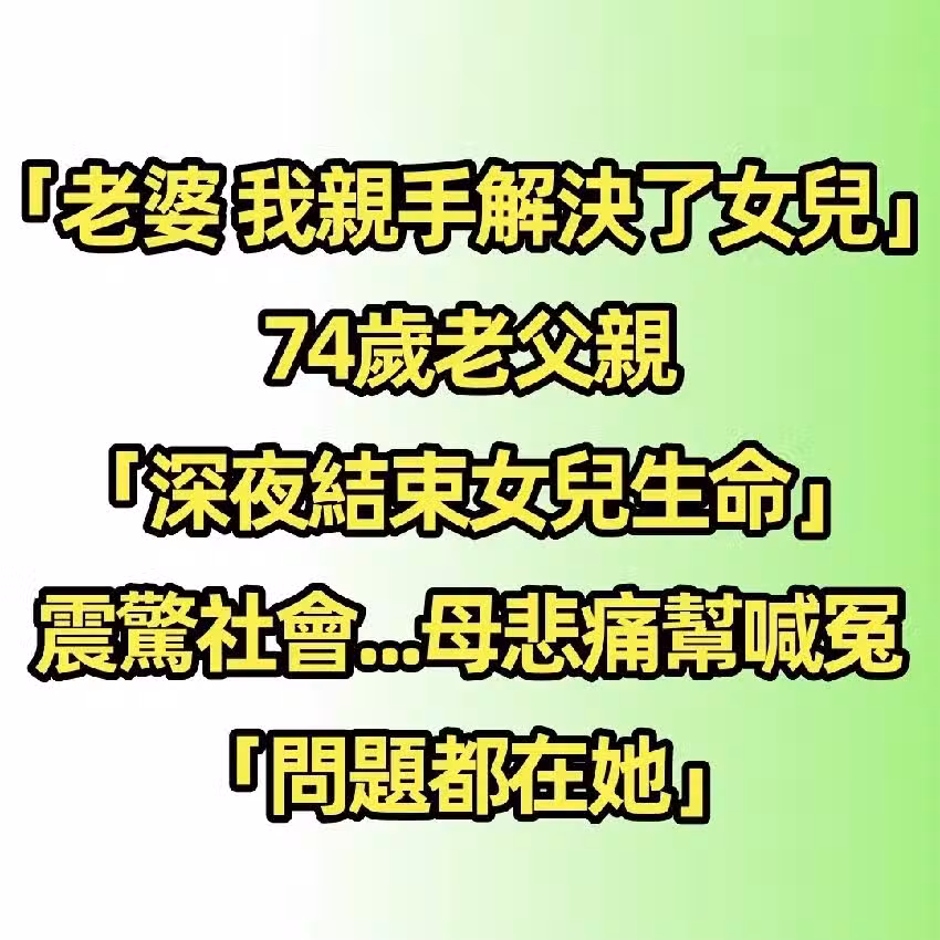 「老婆,我親手解決了女兒!」 74歲老父親「深夜結束女兒生命」震驚社會...母悲痛幫喊冤「問題都在她...」
