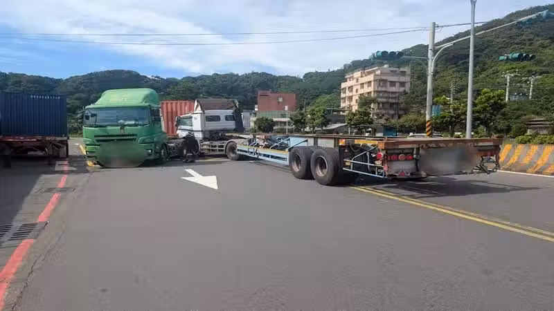 基隆港西岸貨櫃車嚴重對撞 「車頭凹爛」女駕駛受困