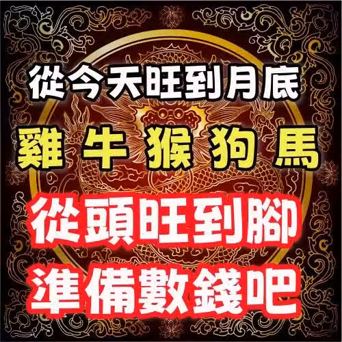 從今天旺到月底(雞牛猴狗馬)從頭旺到腳,準備數錢吧~