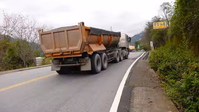 砂石車下坡過彎失控 車斗翻覆車頭「翹孤輪」 網笑「一柱擎天」