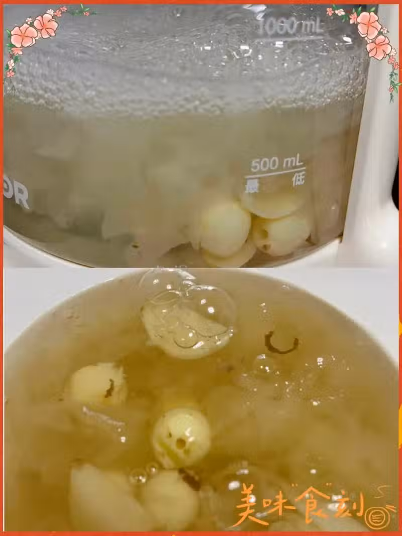 百合干10克、銀耳半朵(選容易出膠的)、去芯蓮子20顆(去掉蓮心更溫和)