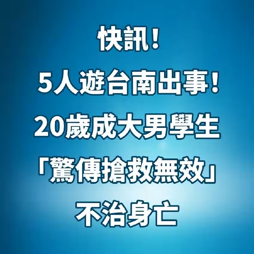 快訊/5人游台南出事!20歲成大男學生「驚傳搶救無效」不治身亡