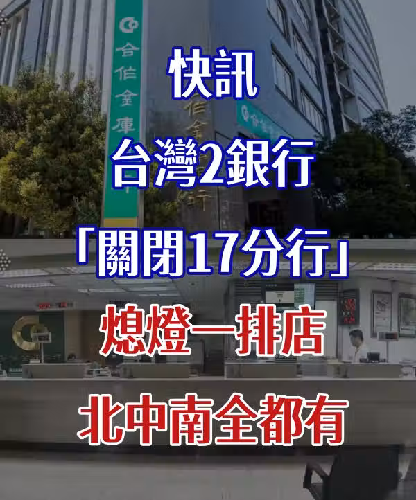 繼台北富邦銀行10間分行暫停營業,合作金庫銀行也宣告,將6間分行合併,其中3據點裁撤。
