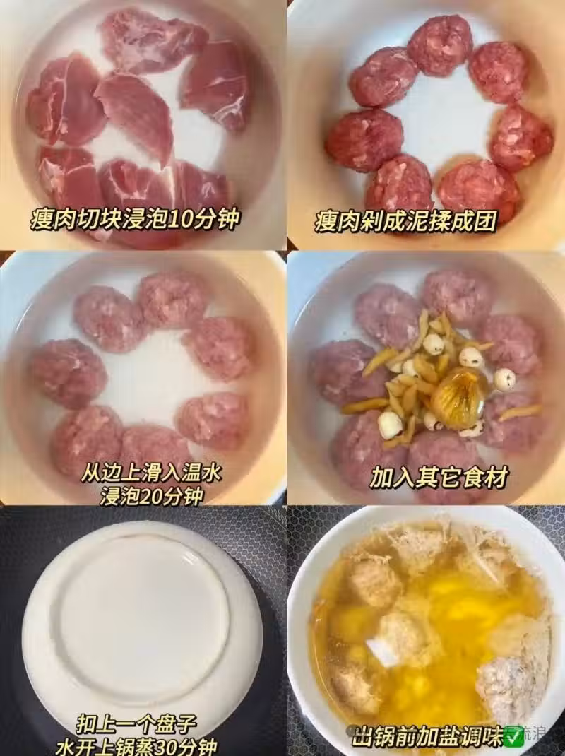 1️⃣ 瘦肉切塊焯水,蓮子去芯,麥冬洗凈