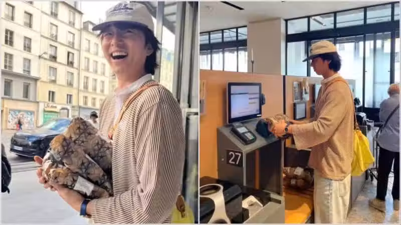 身穿米白條紋襯衫、淺色牛仔褲與卡其色棒球帽,孔劉現身巴黎當地超市,認真挑選水果、食物後,還乖乖站在結帳機前一一掃描商品。即使身旁人潮眾多,他仍露出燦爛笑容,完全沒有明星架子,反而多了一種「鄰家大哥」的溫暖感。