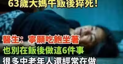 63歲大媽午飯後猝死!醫生:寧願吃飽坐著,也別在飯後做這6件事!