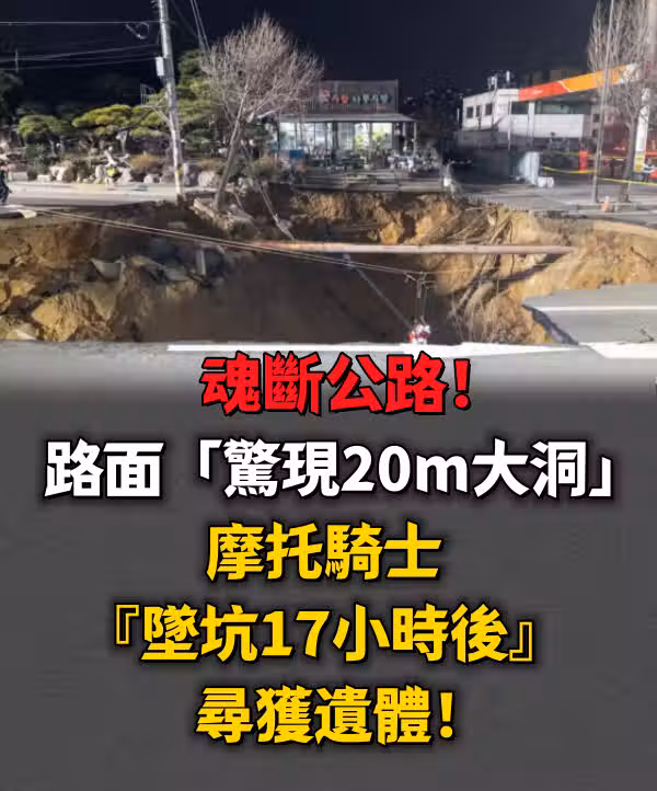 韓國首爾道路突然坍塌,行駛中的摩托騎士不幸掉入洞裡,被活埋17小時後身亡!