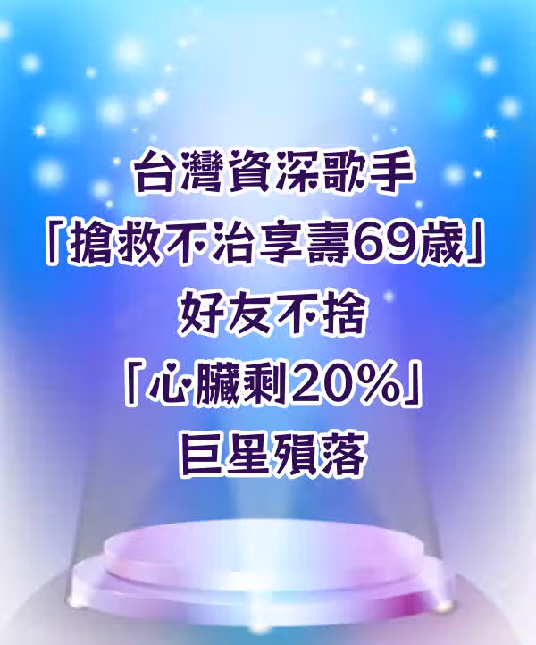 台灣資深歌手「搶救不治享壽69歲」 好友不舍「心臟剩20%...」巨星殞落