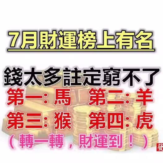 7月財運榜上有名,錢太多註定窮不了的四大生肖!
