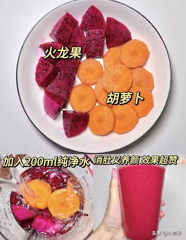 ✅ 配方:火龍果1/2個+胡蘿蔔1根+200ml純凈水!